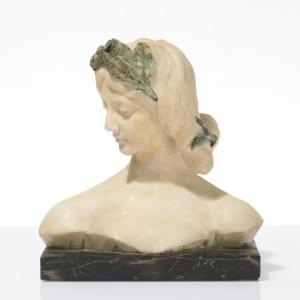 Portrait de femme à la couronne de laurier, marbre blanc et pein...