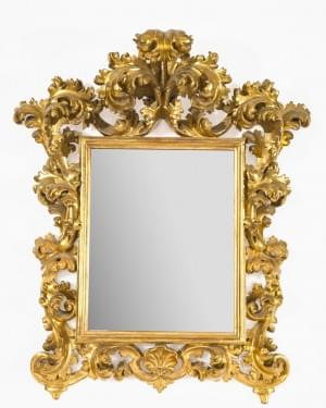 Bois sculpté et doré, glace au mercure, Italie, Venise, XVIIIe s...