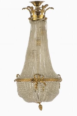 Sept lumières, bronze doré et pampilles facetées, H 104 cm