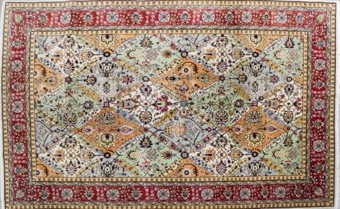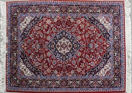 A décor rose à bordure bleue, soie et laine, 87x62 cm
