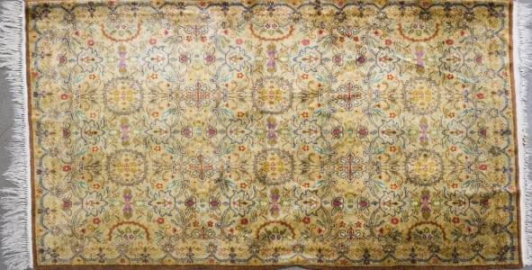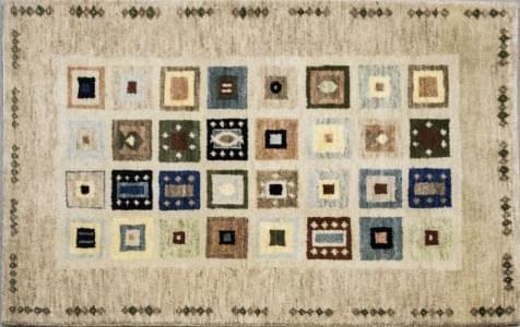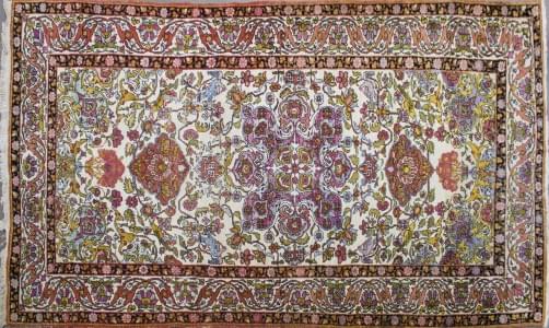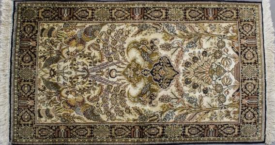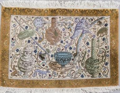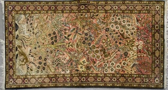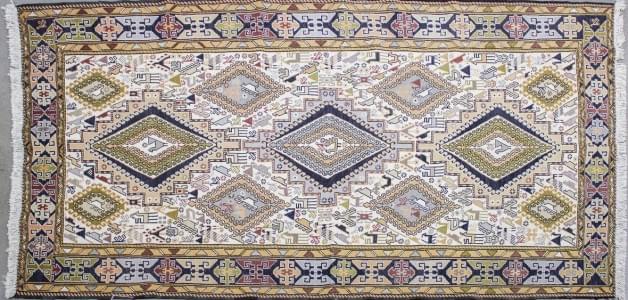 A décor de losanges et animaux sur fond ivoire, soie et laine, 2...
