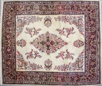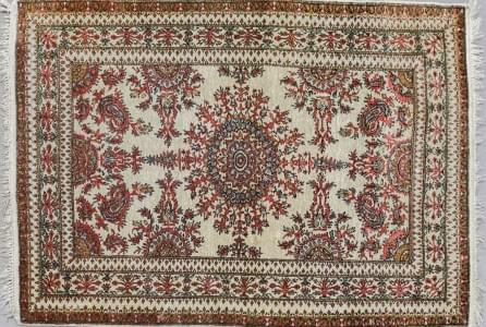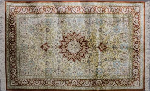 A motif de rinceaux et étoile centrale sur fond ivoire, bordure...