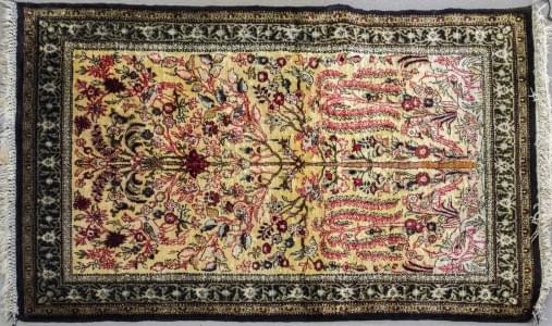 A décor d'arbres et volatiles sur fond jaune, soie, 126x75 cm