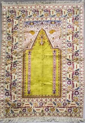 A décor d'un mirhab stylisé vert, soie et coton, 120x160 cm