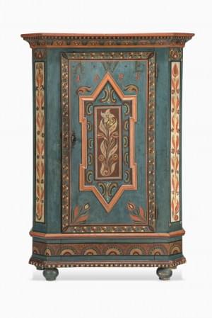 Bois peint à décor de fleurs, monogrammée AWE, datée 1825, 180x1...