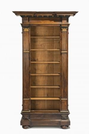 Bois naturel partiellement doré et noirci, montants en pilastres...