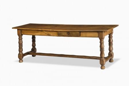 Pieds tournés, entretoise, deux tiroirs, noyer, XIXe s, 76x209x6...