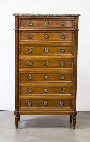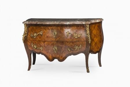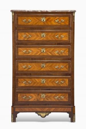 Six tiroirs, bois de placage, bronze doré et marbre,132x75x35,5c...