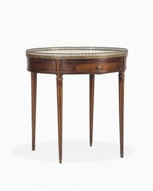 Acajou, laiton et marbre, H 74,5 cm, D 73 cm