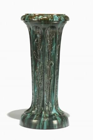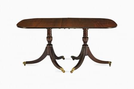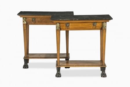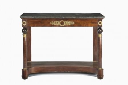 Pieds pilastres à l'égyptienne, entretoise à pieds griffes, vase...