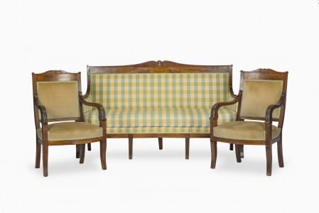Accotoirs en volute, bois naturel sculpté de fleurs, L 200 cm