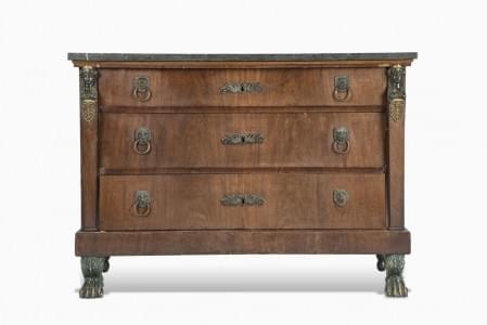 Trois tiroirs, montants pilastres à l'égyptienne, pieds griffes,...