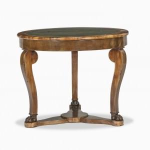 Piètement tripode terminé en griffe, acajou, cuir doré aux petit...
