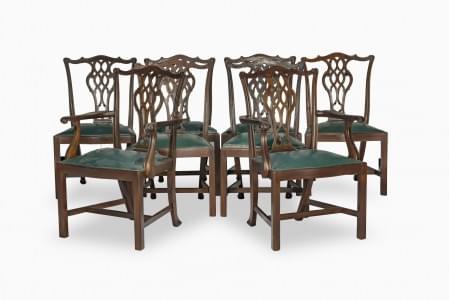 885. Suite de deux fauteuils et six chaises de style Chippendale