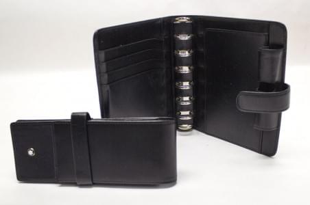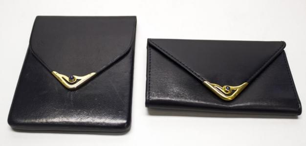 Enveloppe d'agenda et porte plume, cuir noir, 14,5x12 et 16x6 cm