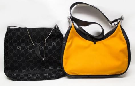 Lot de deux sacs dont un monogrammé noir et un orange et noir, H...