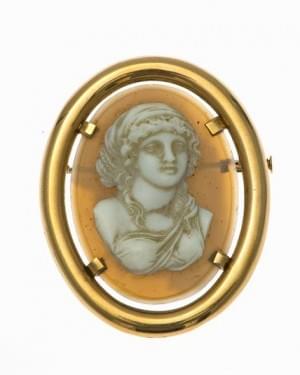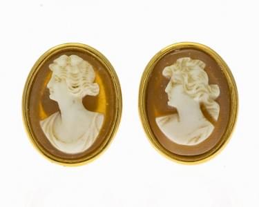 3035. Paire de boucles d'oreilles camée figurant des profils de femmes