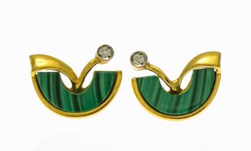 3036. Paire de boucles d'oreilles demi-lune serties de malachite et de...