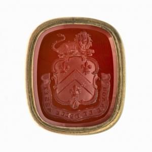 3052. Sceau serti d'une intaille en cornaline à décor d'armoiries