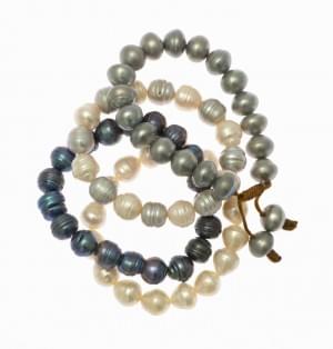 3055. Lot de 4 bracelets de perles d'eau douce baroques cerclées formé...