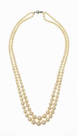 3042. Collier deux rangs de perles de culture blanches