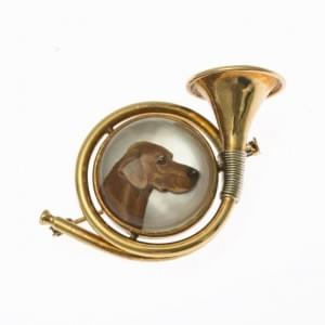 3080. Broche à motif d'un cor de chasse et orné d'une tête de chien