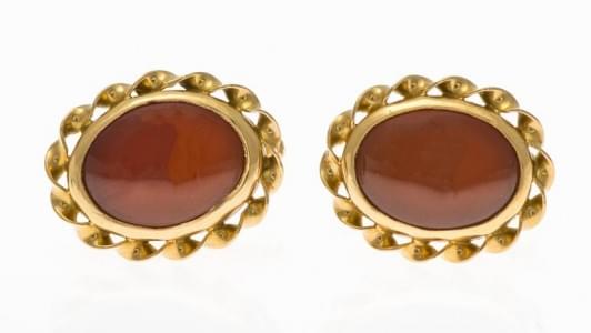 3093. Paire de boutons de manchette sertis de cornaline