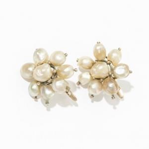 3095. Paire de clips d'oreilles fleurs sertis de perles fines