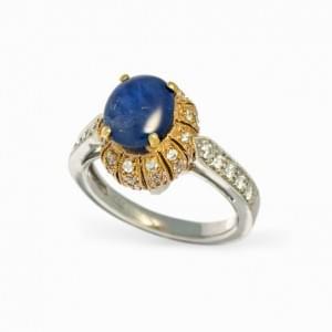 3097. Bague sertie d'un saphir cabochon et pavée de saphirs blancs