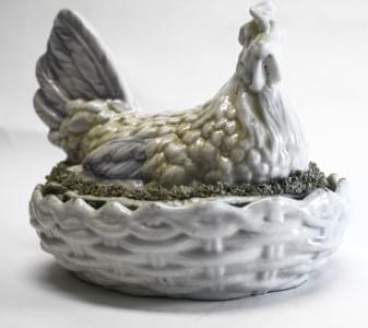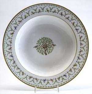 Porcelaine à décor d'oiseaux en camaieu vert et or