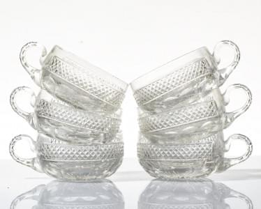 3178. Suite de six tasses litron d'époque Empire à décor blanc et or d...