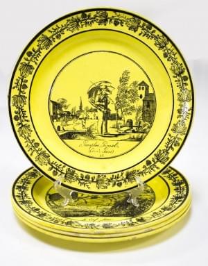 3150. Quatre assiettes murales dont 3 à décor de chasse