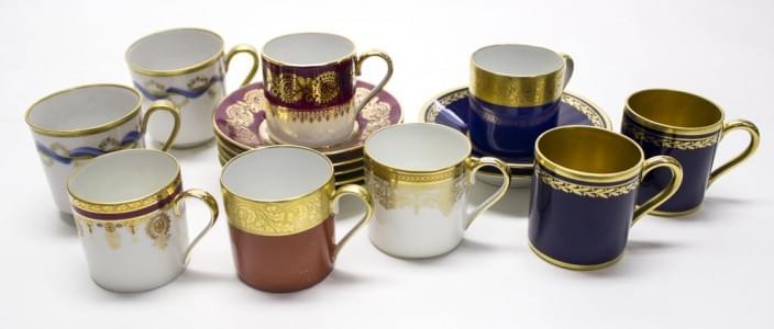 Karlsbaden, porcelaine or, 1921, comprenant : 5 tasses et sous-t...