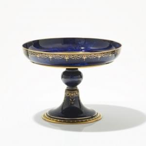 3180. Grande coupe sur pied bleu nuit et or à décor de lambrequins et...