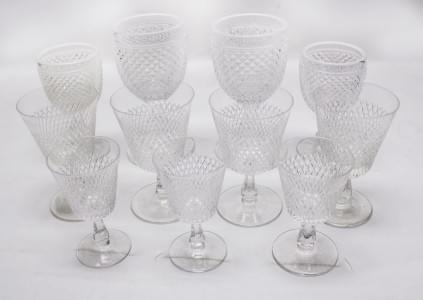 Cristal gravé à décor de rinceaux, composé de 15 verres à eau, 1...