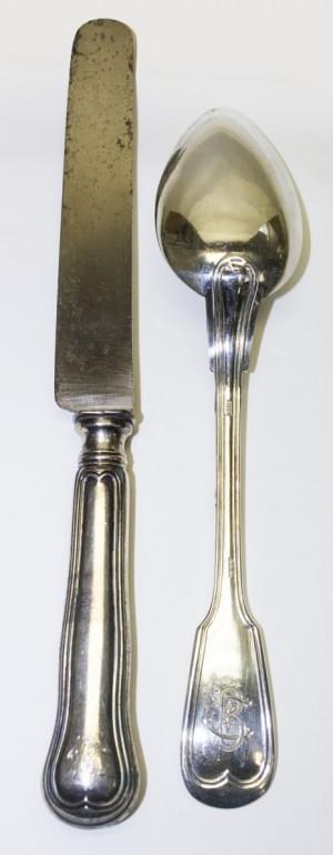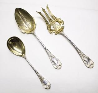 3219. Deux cuillers et une fourchette de service