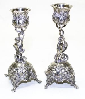 3228. Paire de chandeliers à décor de putti sur terrasse de rocaille