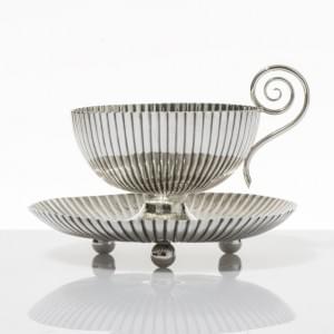 3230. Tasse et soucoupe à motif de godrons rayonnants