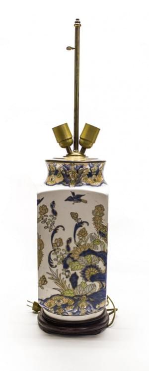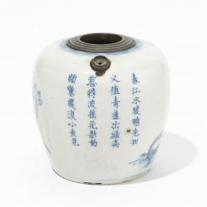 Porcelaine émaillée bleu-blanc à décor de nénuphars, lotus, cana...