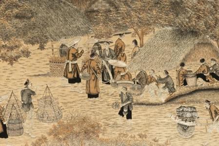 Panneau de soie brodée, Asie du Sud Est, milieu XXe s, 120x132 c...