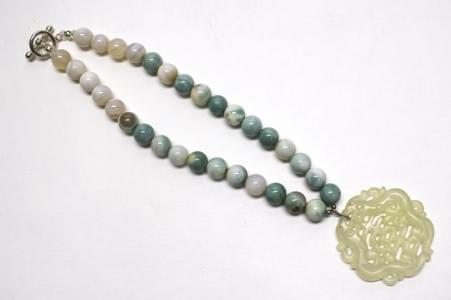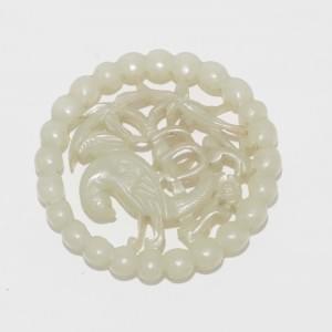 Ivoire sculpté et cabochons de turquoise, Chine, 11,5x12 cm