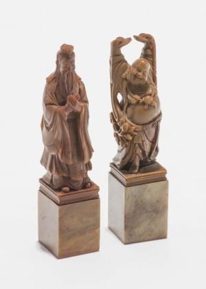 3357. Trois netsukes en forme de personnages et d'un singe