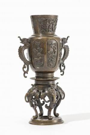 Bronze à patine foncée, anses en forme de bambou, Chine ou Japon...