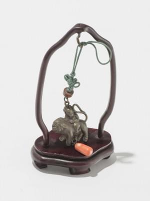 3325. Pendentif figurant un personnage chevauchant une bête