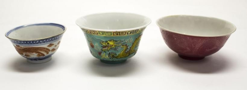 3328. Ensemble de 3 bols à décor de dragons