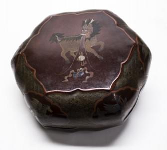 Laque rouge à décor d'un kylin sur le couvercle, Chine, XIXe s,...