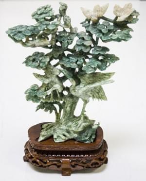 3342. Groupe figurant des grues abritées sous un arbre et petits anima...