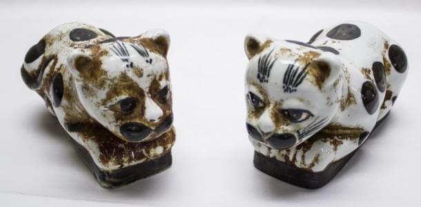 3333. Deux vases couverts, l'un à décor de félins en relief, l'autre s...