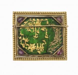3367. Broche réversible émaillée d'un côté et sertie de rubis et feuil...
