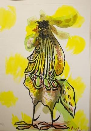 La femme et l'oiseau, lithographie en couleurs, signée dans la p...